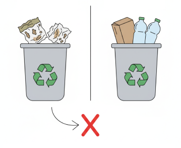 Nie wrzucaj do pojemników do segregacji odpadów bardzo zabrudzonych, np. papieru po maśle, chusteczek higienicznych, ręczników papierowych. Nie segregujemy także odpadów zabrudzonych klejami oraz zatłuszczonych. One nie nadają się do recyklingu!