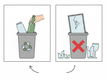 Nie wrzucaj do pojemników do segregacji potłuczonych luster, szyb, szklanek. Jest to inny rodzaj szkła. Zanieczyszczenie odpadów szklanych (słoików, butelek) poprzez np. fragmenty szyb czy luster może spowodować brak możliwości przetworzenia tego surowca! Szkło opakowaniowe to nie to samo co szkło gospodarcze!