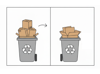 Rozkładaj kartony przed wrzuceniem do pojemnika. W ten sposób będą zajmowały mniej miejsca (nawet o 70%) i rzadziej będziesz musiał je wynosić!