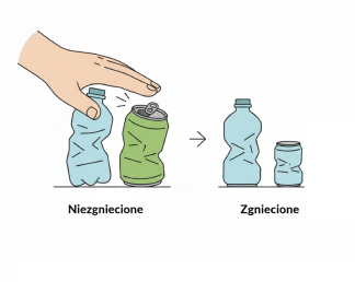 Zgniataj puszki i plastikowe butelki przed wyrzuceniem. Zgnieciona butelka zajmuje 80% miejsca mniej. Dzięki temu rzadziej musisz wynosić odpady ze swojego domu, a firmy odbierające nie muszą wozić powietrza.